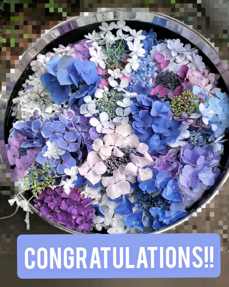 6/26に訪れた相模原北公園にあった紫陽花の花手水でお祝いします☺️💞