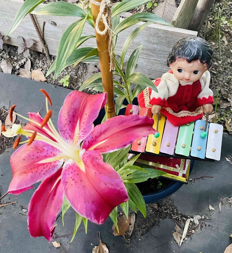 『スコーピオ』真っ赤なカサブランカが咲きました🌺木琴を叩く🧑🏻とコラボ