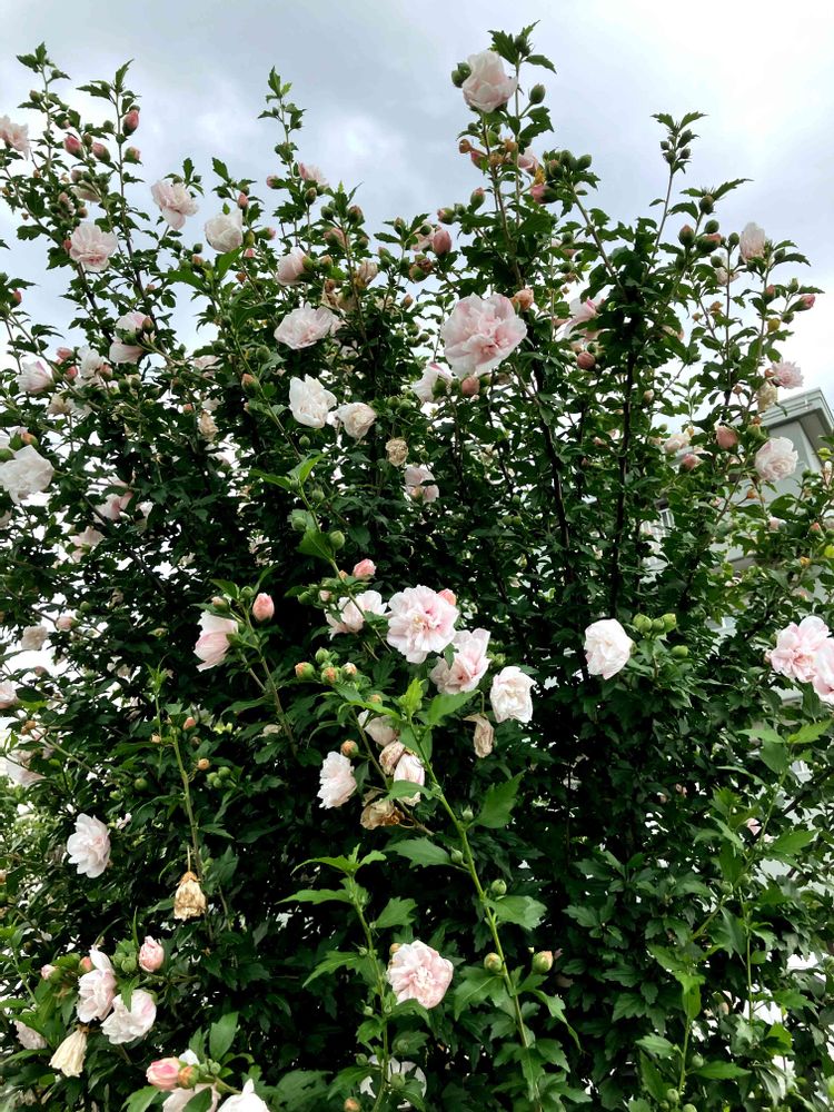 とても大きな幹から元気を振りまいているムクゲさん発見👀🎶