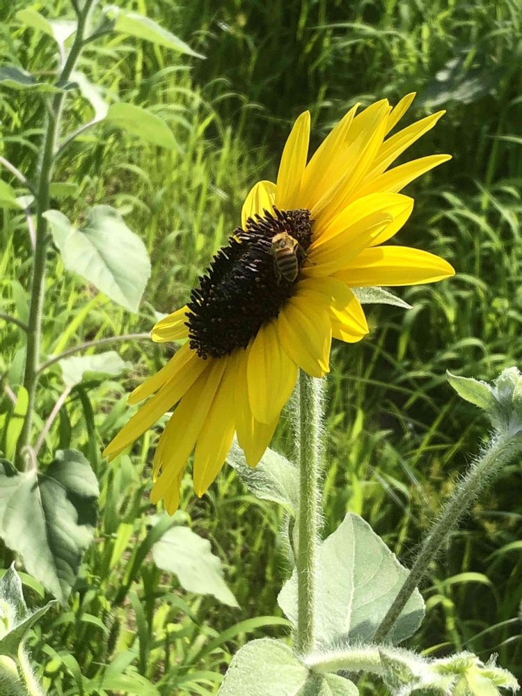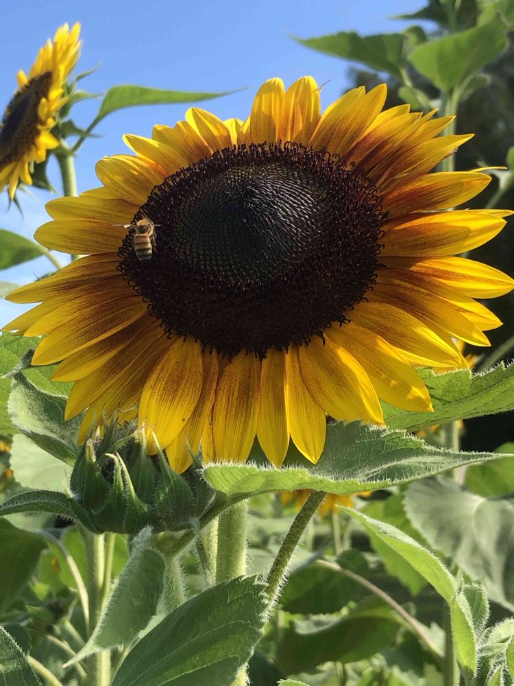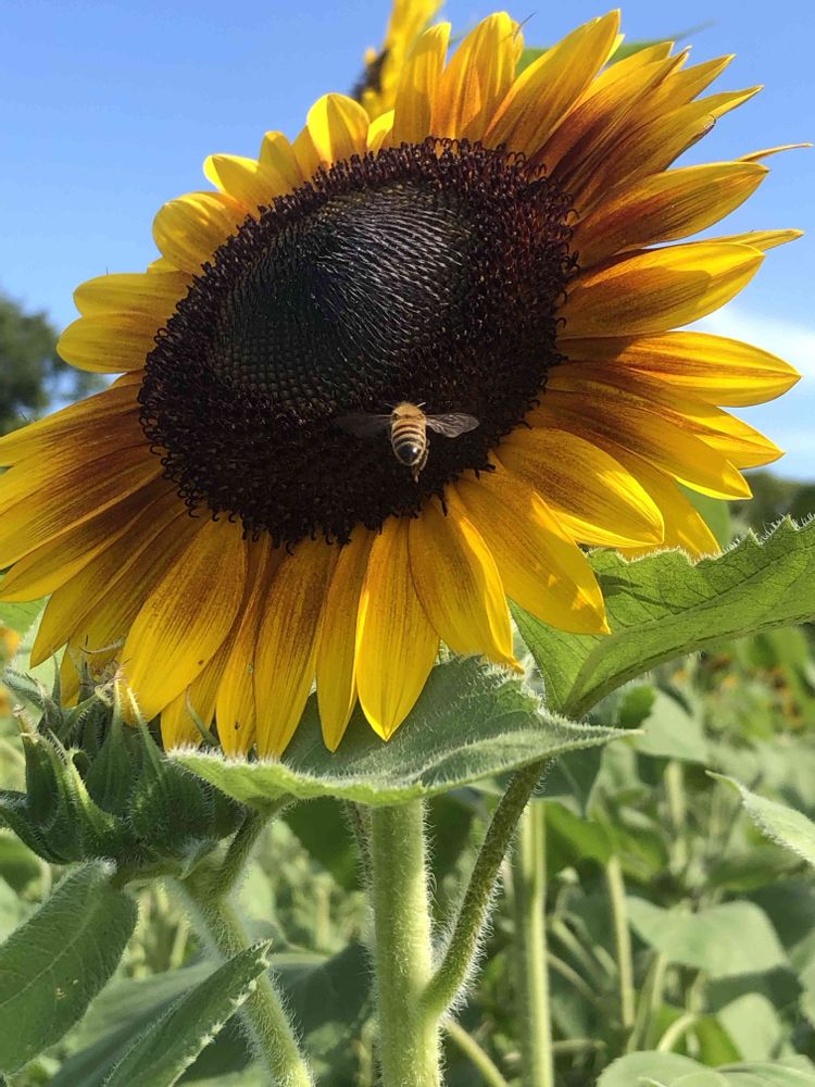 昨日、ヒマワリ畑にて、暑さに強い「ヒマワリ」と「ハチ」さんをパチリ!📸🌻🌿🐝😄🤗🌞✌️