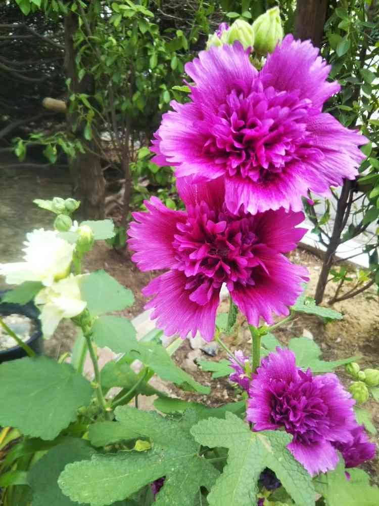 ホリホックスプリングセレブリティーズの名前で売られていた割引の苗、タチアオイと同じ花とは知らずに色違いを購入。