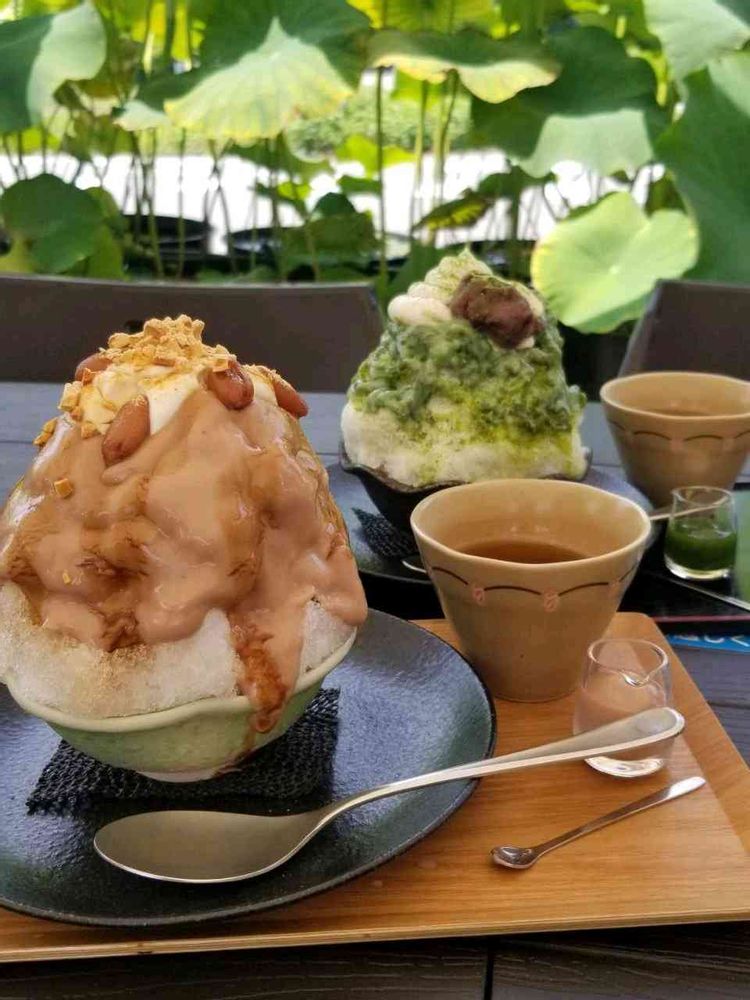鉢に植えられた蓮🪷を見ながら食べるかき氷🍧美味しかったです。