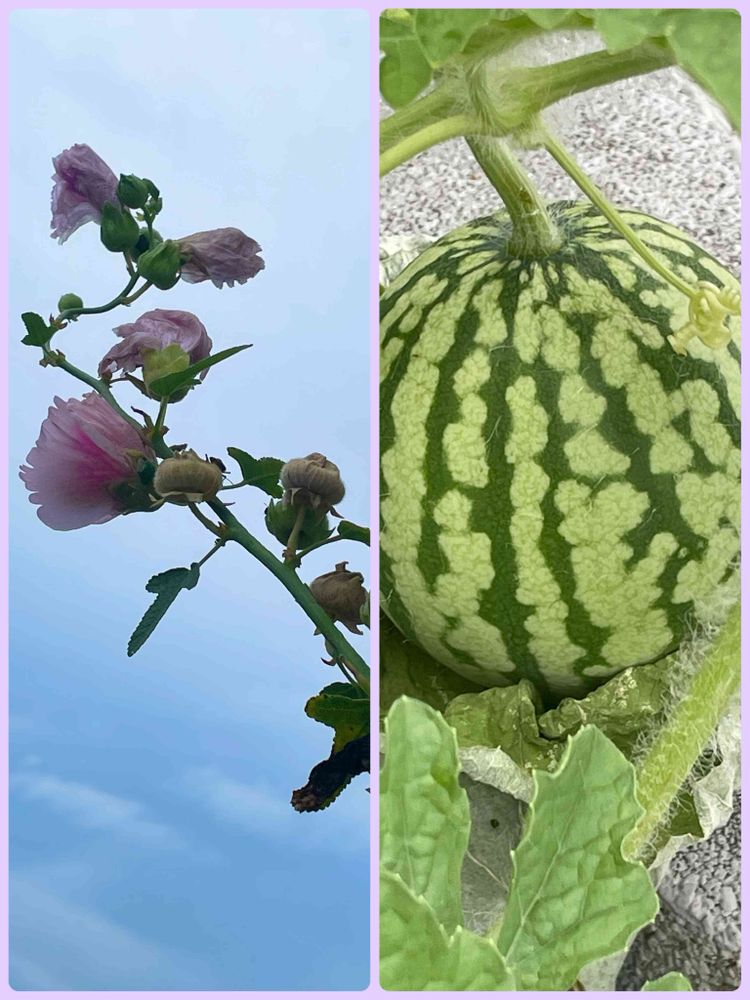 スイカ,八重のタチアオイ,朝散歩の投稿画像
