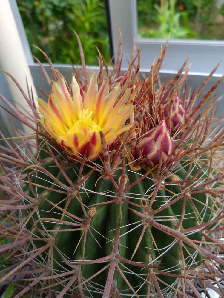 本当に色鮮やかなお花ですね。棘棘から想像できない可憐なお花を咲かせてくれる🌵サボテンのお花にキュン2です😊💓