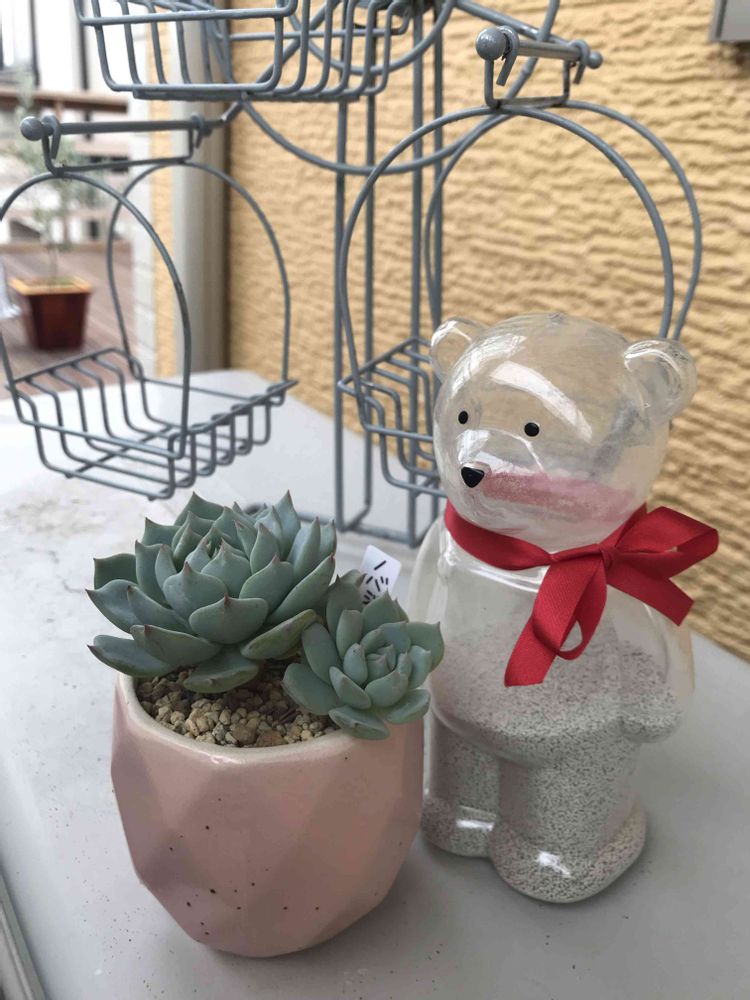 爪先のピンクがピンクの鉢とお似合いだなぁと眺めてるクマさんには、防虫剤が入っています🧸🐛