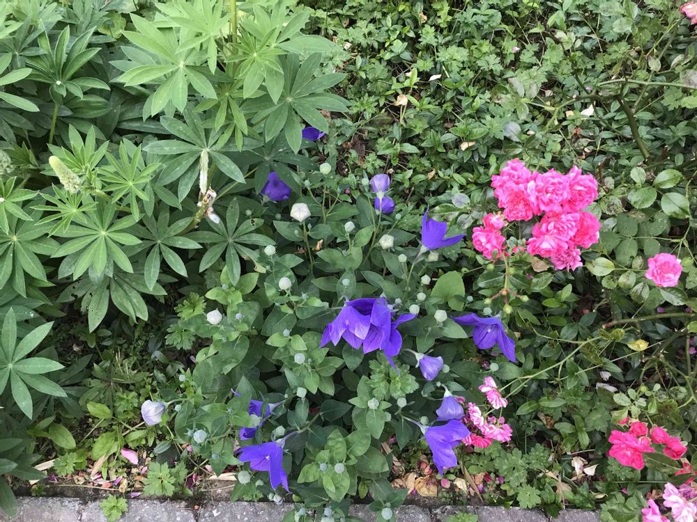 ピンクの薔薇のお隣りに、紫色の桔梗が映えますね💜🩷