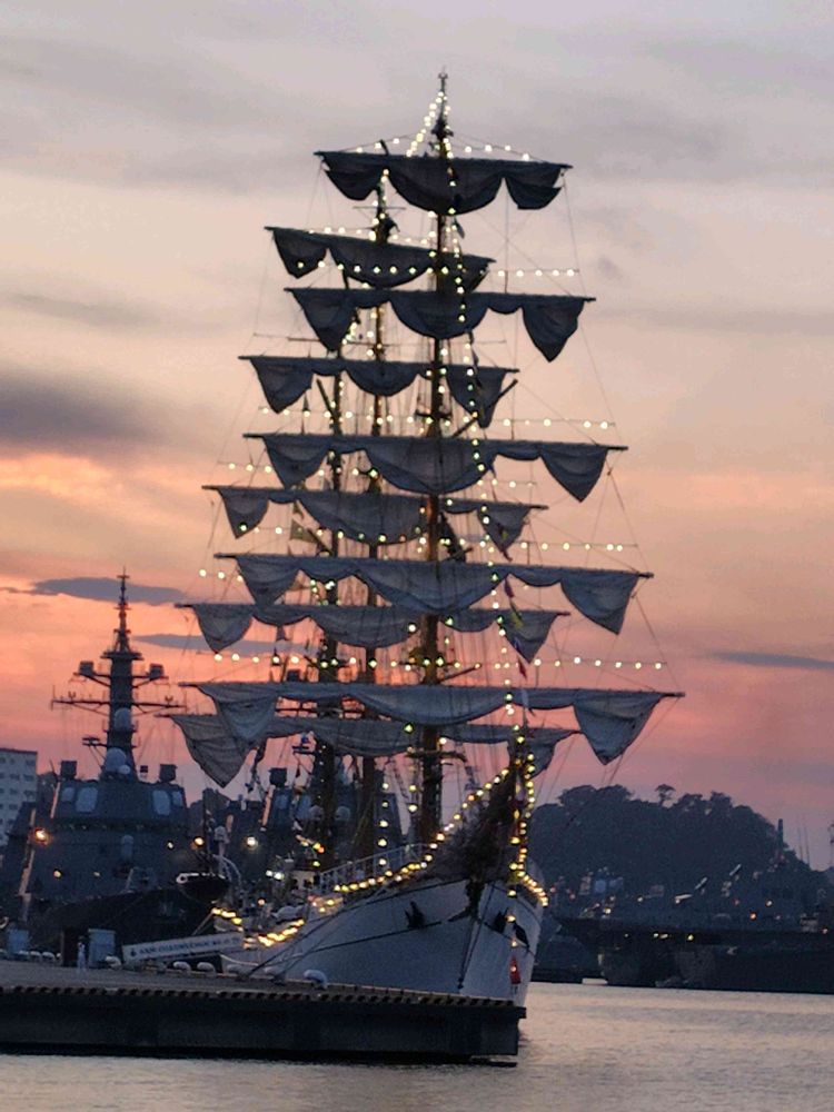 普段、イージス艦とか護衛艦とか潜水艦ばかりなので、帆船は華やかでしたー。