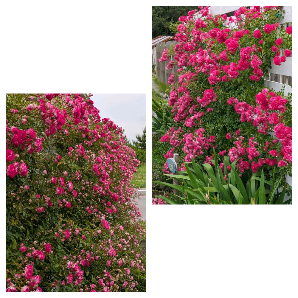 どちらも同じつるバラ、レッドドロシーパーキンスなんだけど何故か今年は色変わり⁉️レッドではなくピンクに💦