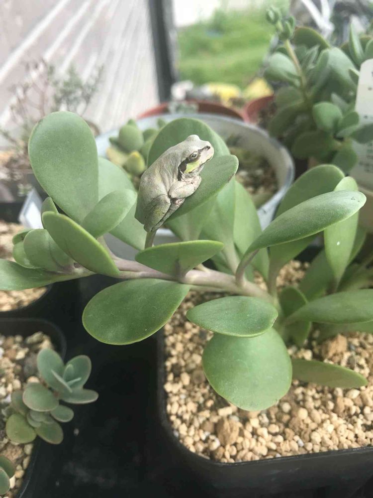 昨日、夜に玄関開けたらタイミングよくカエル🐸ちゃんが入っちゃって、避難させてた多肉に隠れようとするから🗣『おぉーーぃ!出て来てよー!』と2、3分格闘💥