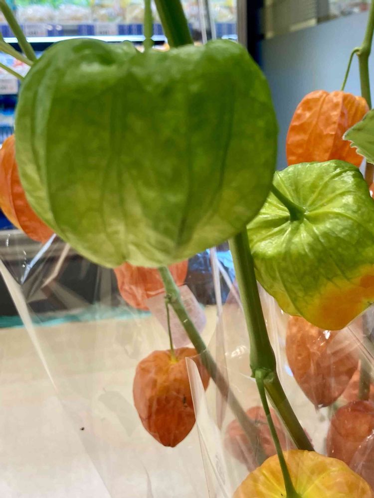 今がちょうど花季だけれど、スーパーの花売り場には赤く色付いたホオズキが並んでいる。