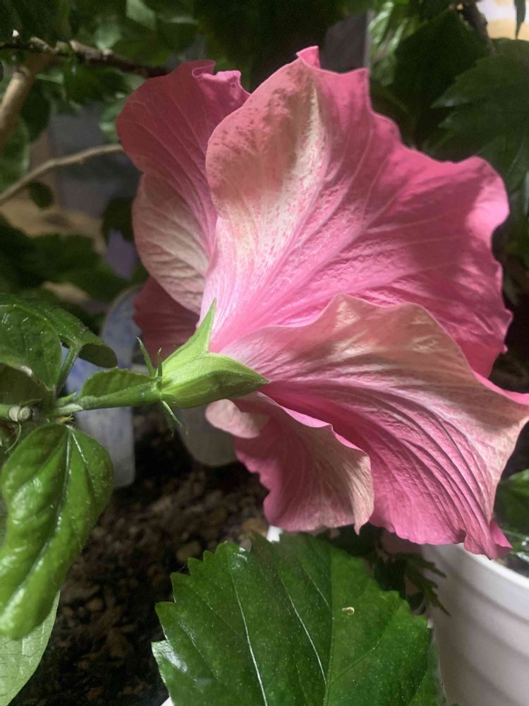おはようとみちゃん😅💦💦朝から1つ咲いたけどまさかのハイビスカスの枝に絡まってたサマーブリーズだった😂💦