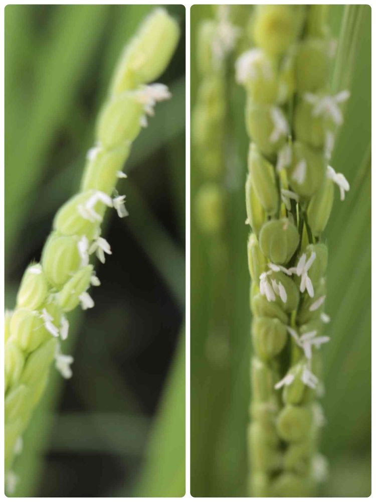 台風の影響もなく、コシヒカリの花が咲いてます🌼 花と言っても雄しべなのかなぁ?