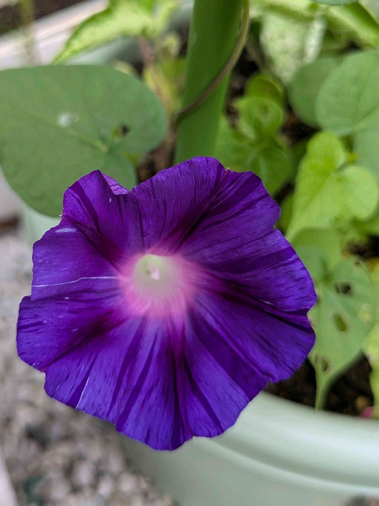 暑い朝もアサガオはさわやかな顔を見せてくれますね💜