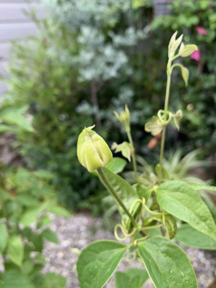 1.今年おたまちゃんのロスフラワー市で連れて帰った、タグもなくどんな花がつくのか分からなかったクレマチスさん。蕾がついてました😆👍楽しみ😊