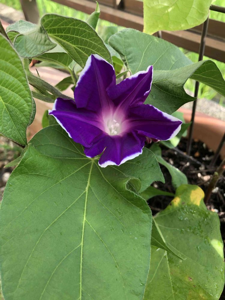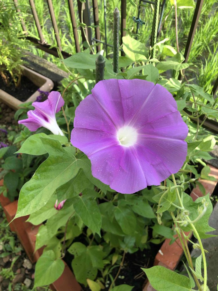 やっと希望の色の子が咲いてくれました❣️同じ苗の種から色々な色が出るのを初めて知りました!濃い紫に白い縁取り大きく咲く子を待っていました。縁取りのない薄い色の子はどうして生まれたんでしょうねー
