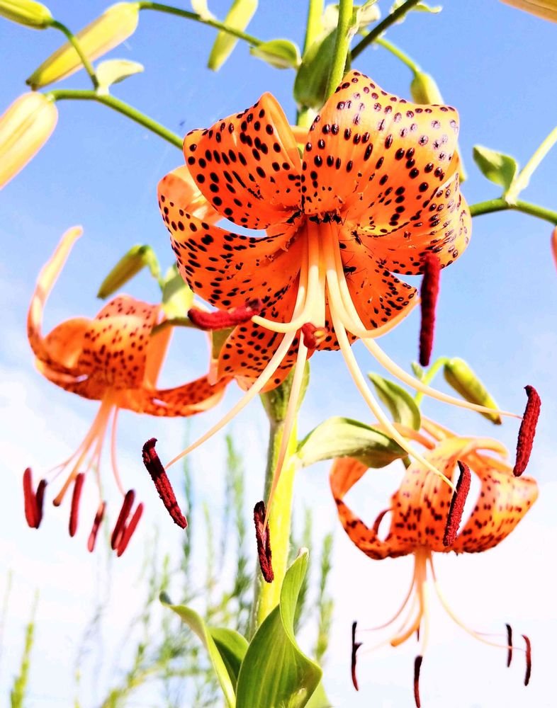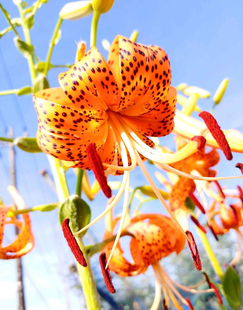 別名は 天蓋百合(てんがいゆり)、英語名は Tiger lily(タイガーリリー)、トラに似てますね。🐯
