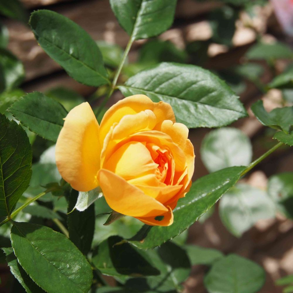 元気そうで、これからどんどん成長して、見事なお花をたくさん咲かせて欲しいです〜山吹色のバラがたくさん咲く姿を想像して、ワクワクします!
