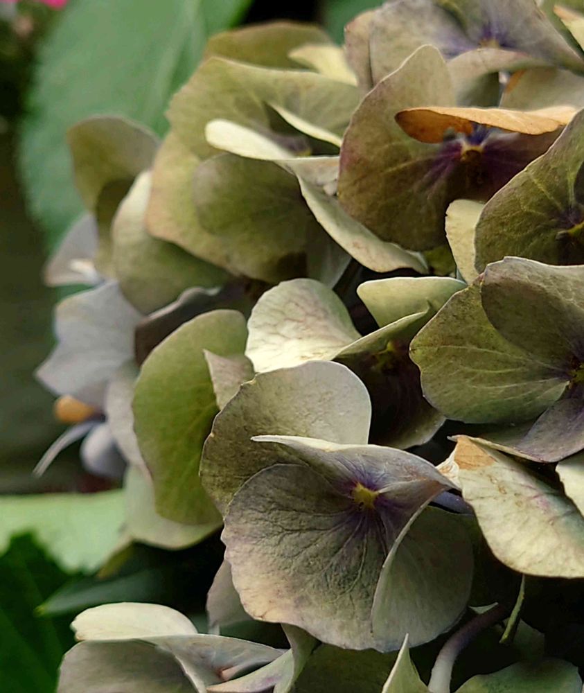 クスミカラーに変わった紫陽花さん🌸この色好き〜💚🤎💙