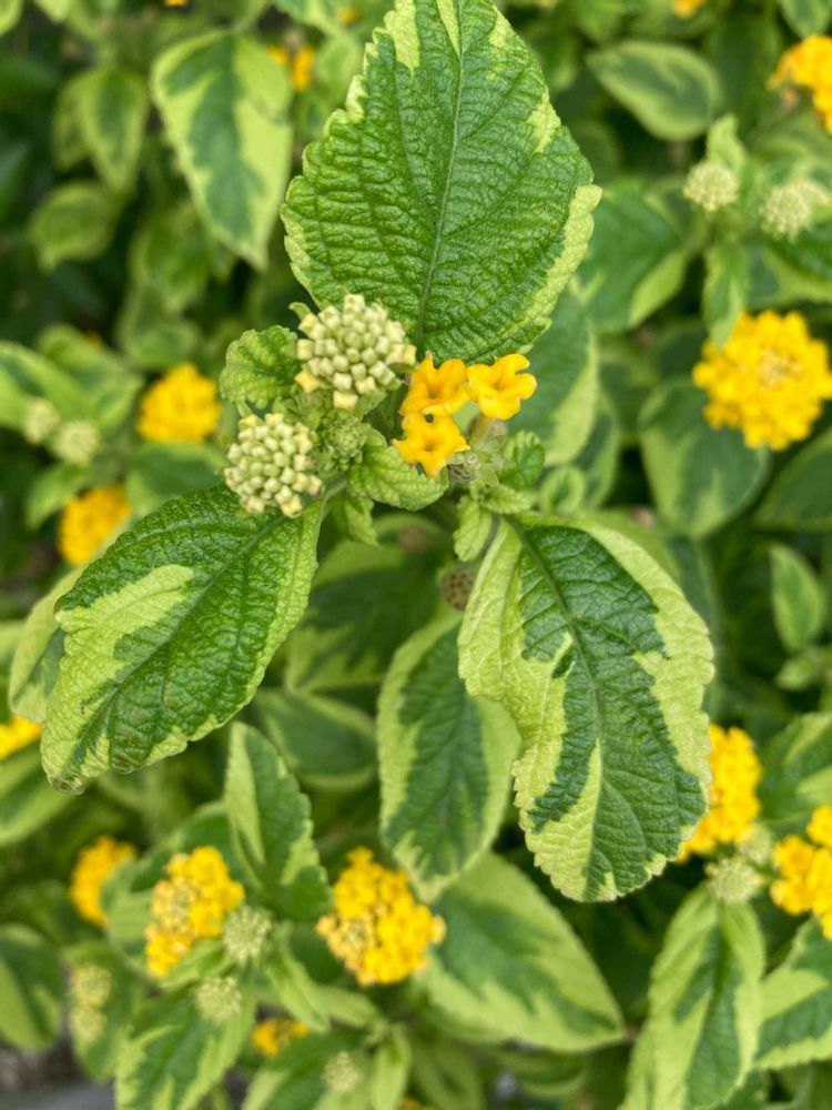 🟡キバナランタナ、葉は斑入りで涼しげですね!
