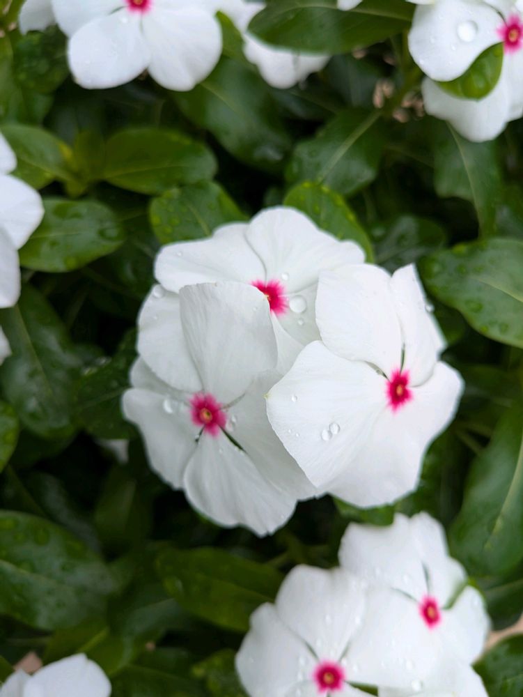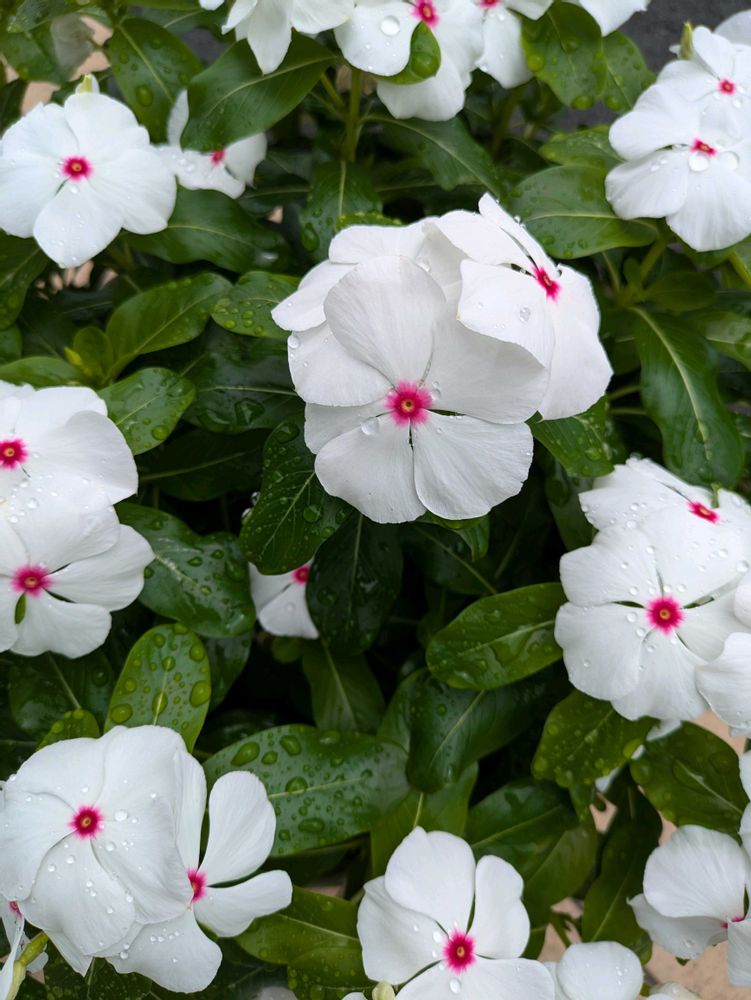 ①②ニチニチソウ❀雨に濡れて可愛い花姿💕たくさん咲きました