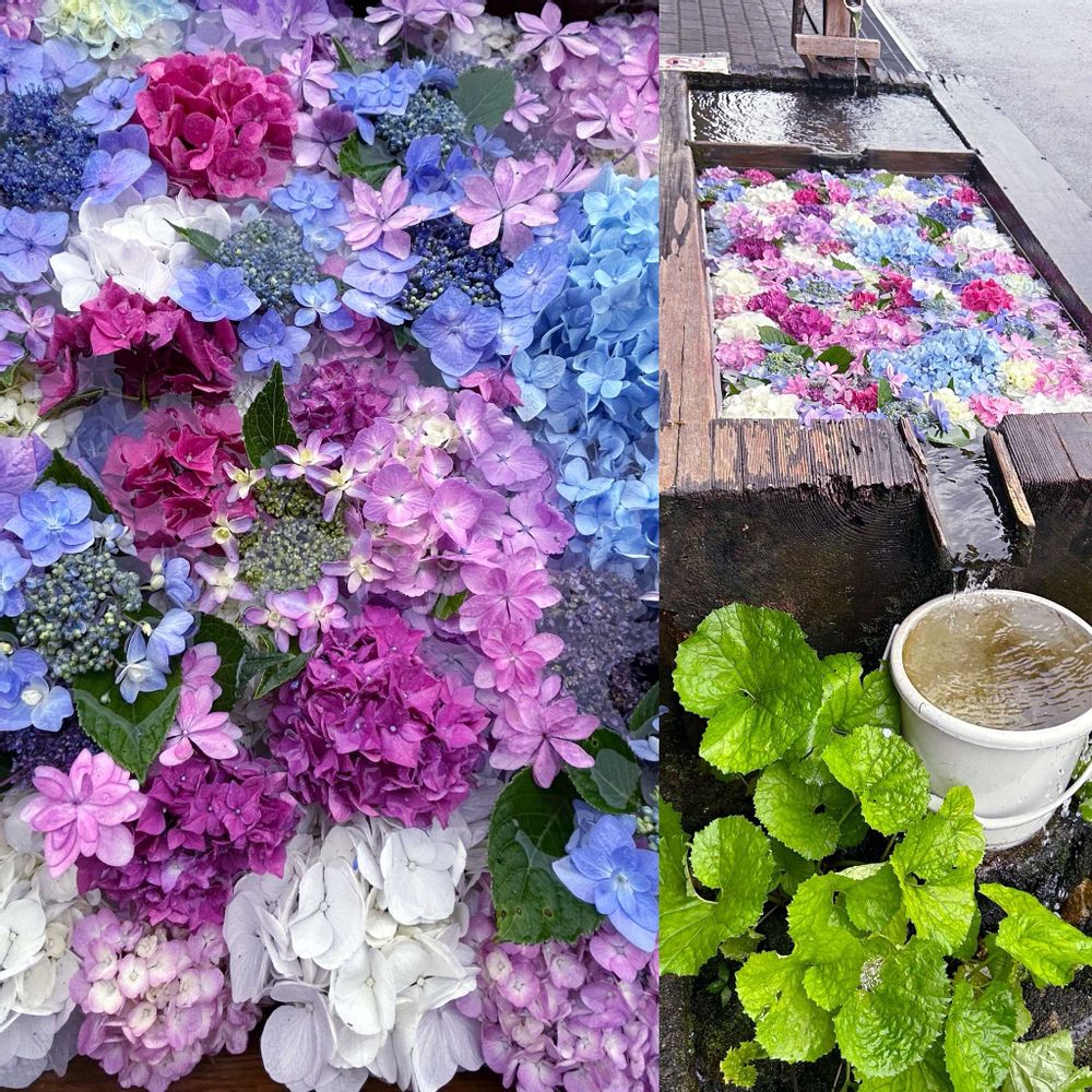 いろんな色の紫陽花で埋め尽くされた花手水、道の駅に立ち寄る人たちの癒やしになりますね〜🥰