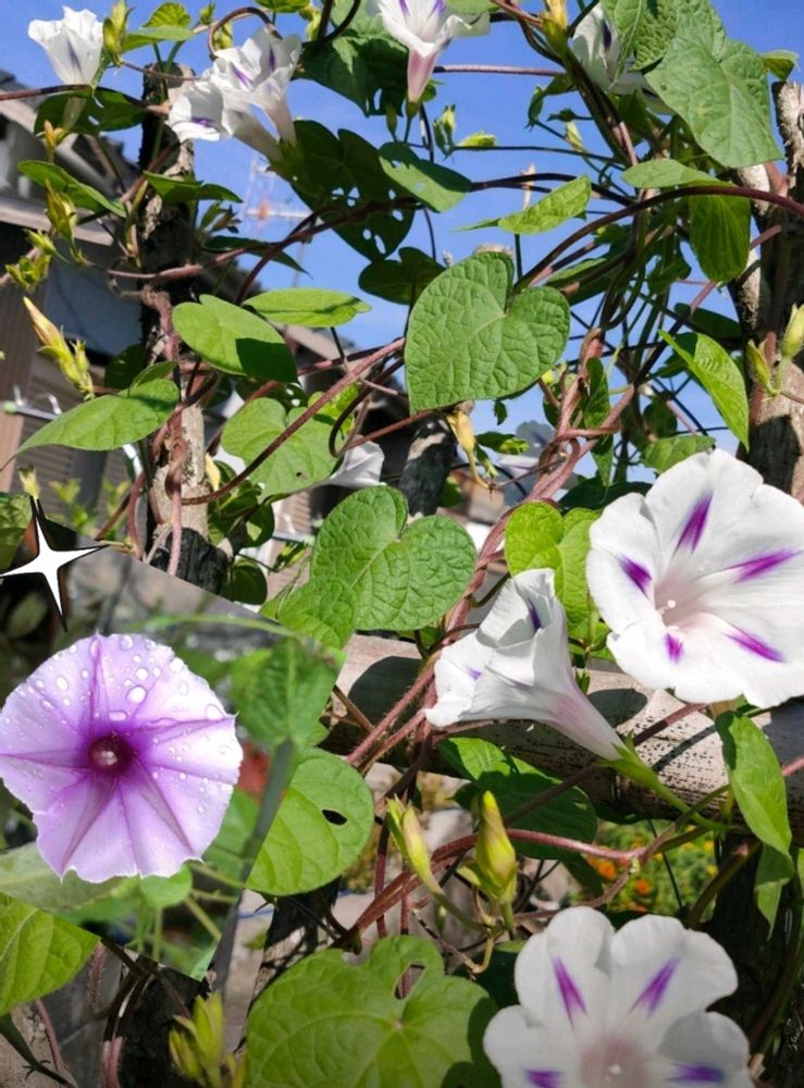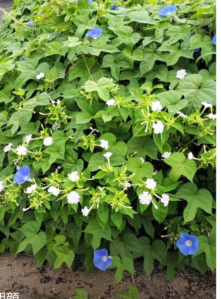白のオシロイバナの中ブルーのアサガオも、素敵な💓なpicですね🤗