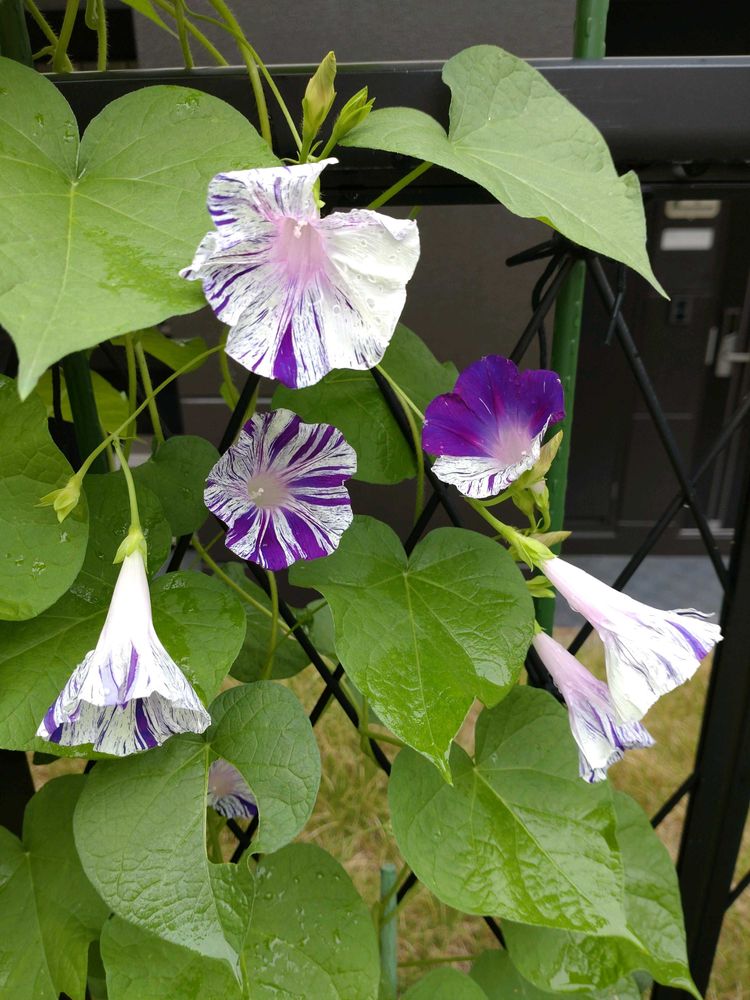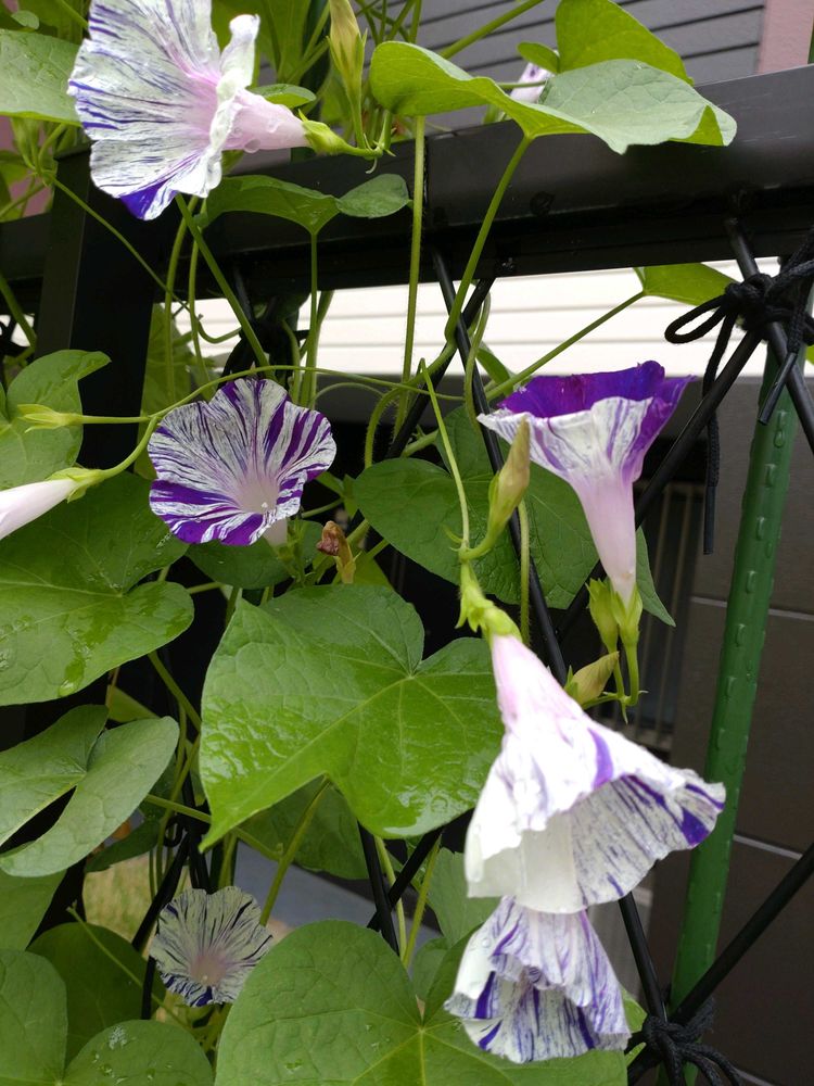同じ朝顔でも色合い模様が違って楽しみも倍増です