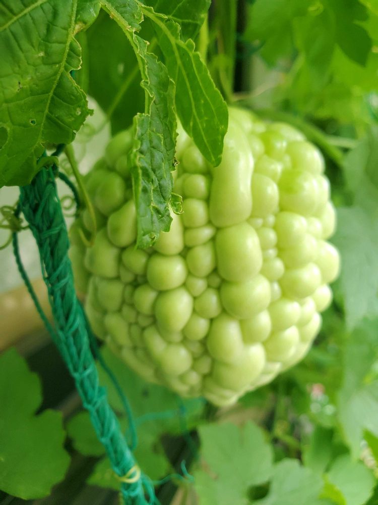 実を付け始めたアップルゴーヤのネットが昨日から強風に煽られてます🌀(ノ∀≦。)ノ💦