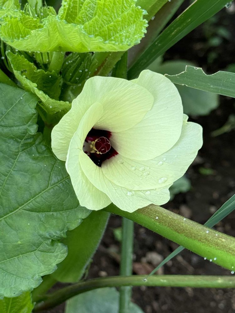 🌼クリーム色 少しづつ咲き採れ出しました 角のない丸いオクラです