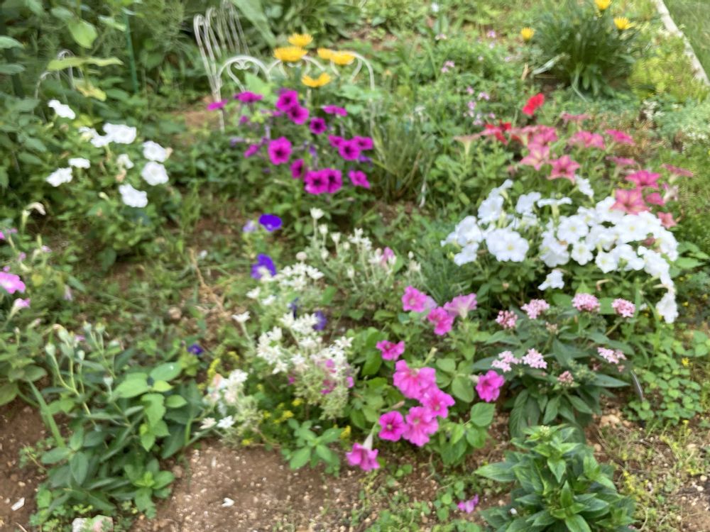 切り戻したペチュニアなどがすっかり花盛りにになりました。8月にもう一度した方がいいのかな?