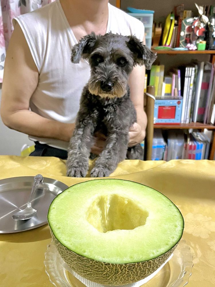 ④ 2人からメロンをもらって大満足 ▼^ェ^▼