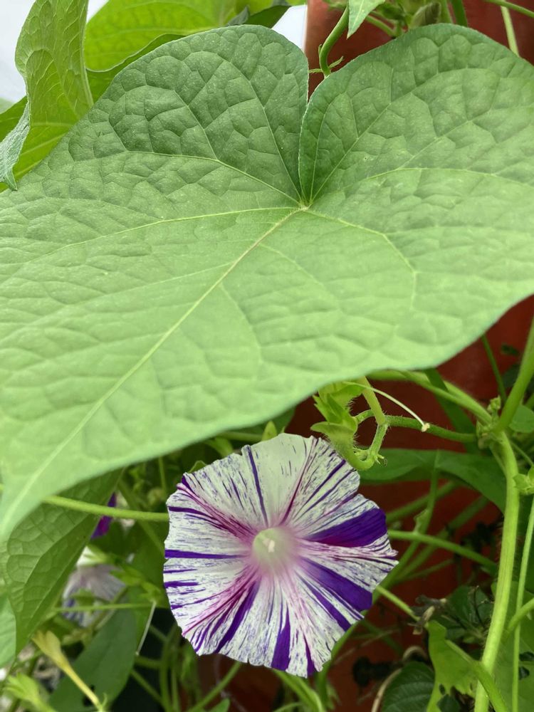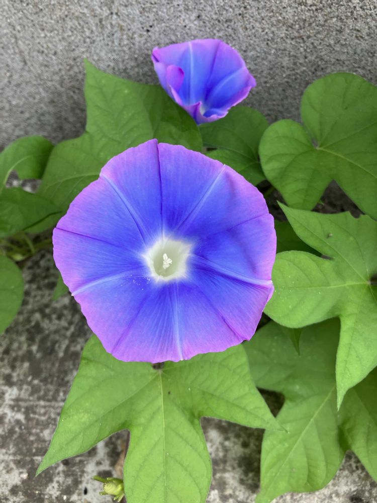 家の庭に咲く紫色のお花と、近所の道端に咲く絞り模様のお花🤍💜