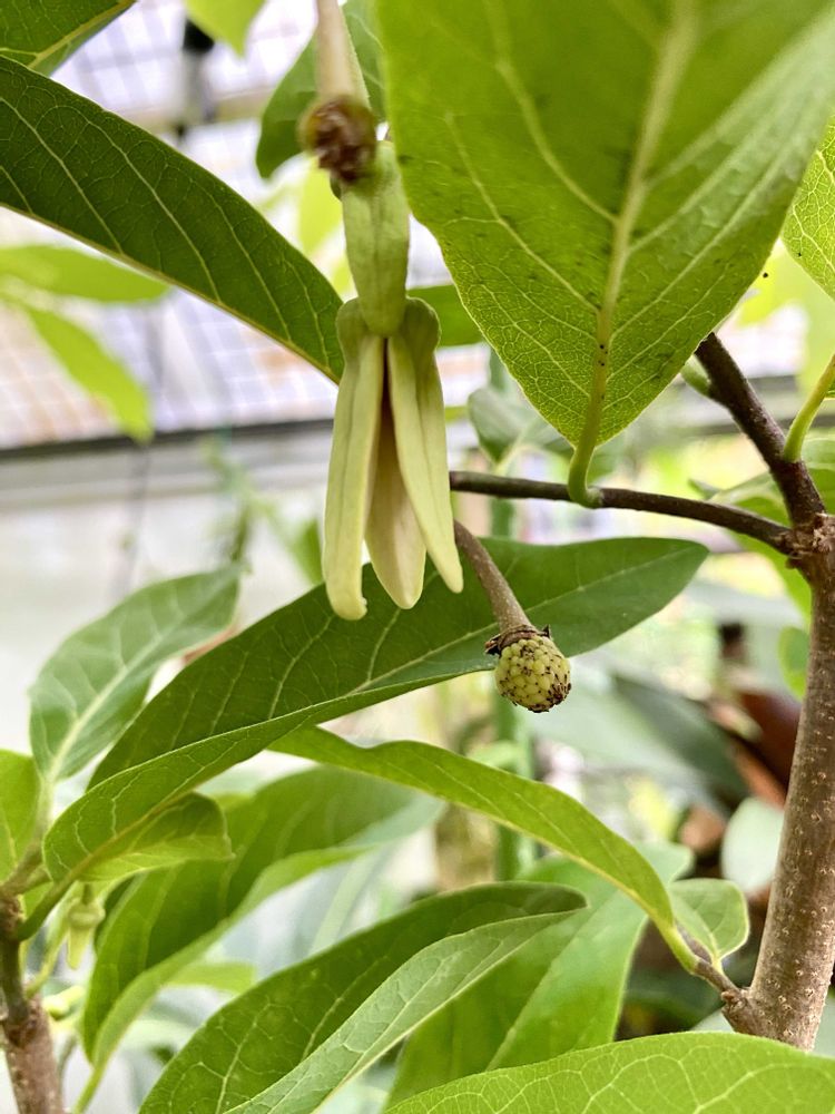 ビリバとよく似た地味な花ですが、甘い香りを漂わせて自生地では特定の虫を呼んで受粉をしてもらうのでしょうが、日本にはその虫が居ないので虫の代わりに人工受粉を毎日せっせと行っています。🐝🪲