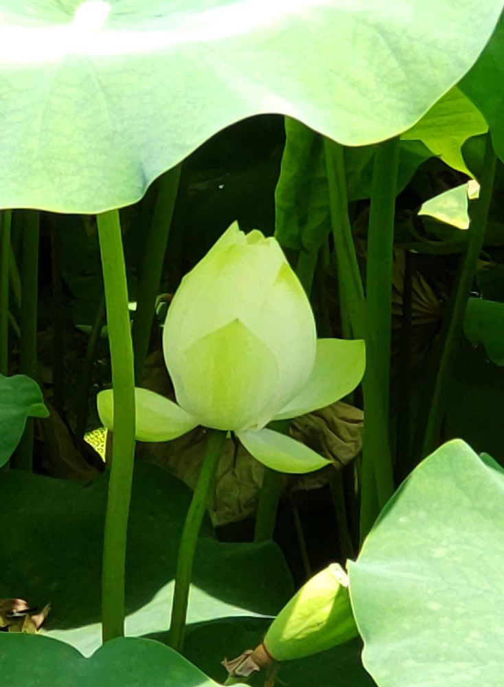 太陽の日差しが葉っぱに透けて 陰の白いツボミが淡いグリーンに映るなんて思ったこともなかったので 見られて幸せでした🪷💚