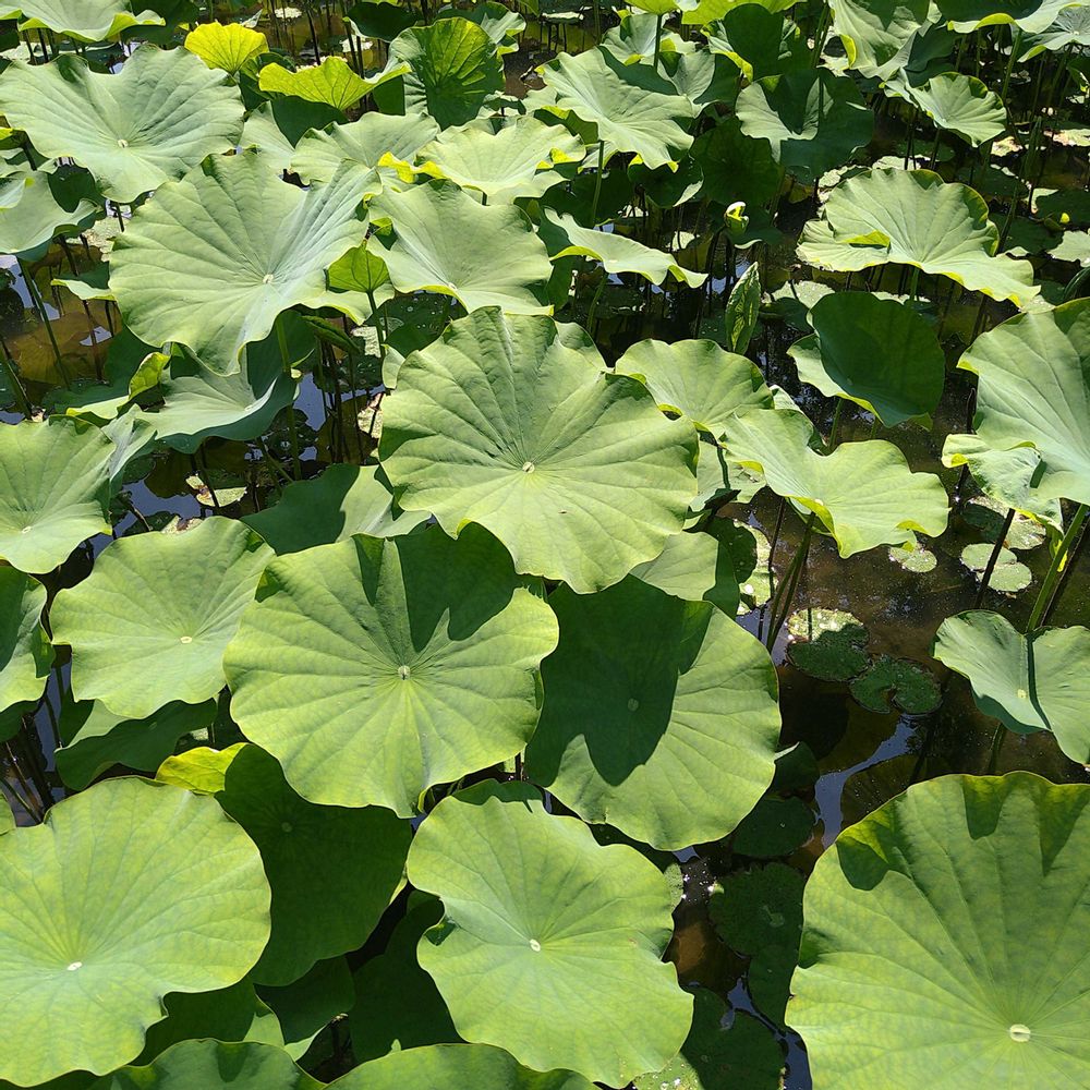 現在は開花が始まっているようですが、私が見た頃は立ち葉のみ。大きく成長した葉が陽の光を浴びてキラキラしていました。