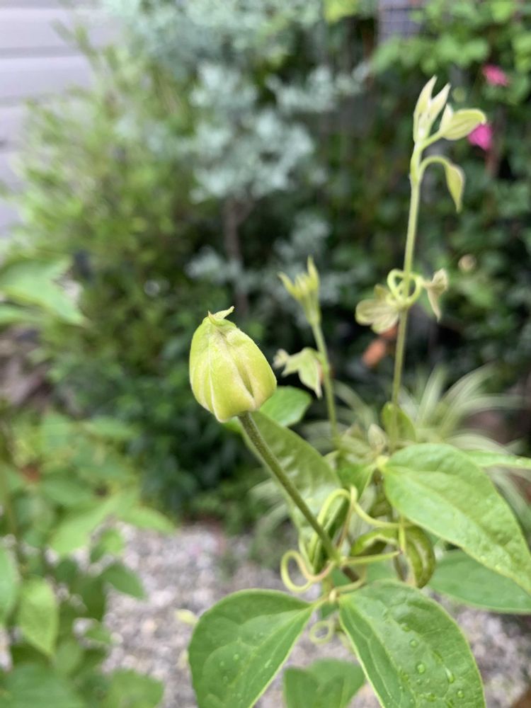 もう一鉢のクレマチスは、まだ蕾もつかずですが楽しみは少しずつとっておきましょうと、自分に言い聞かせる🤭