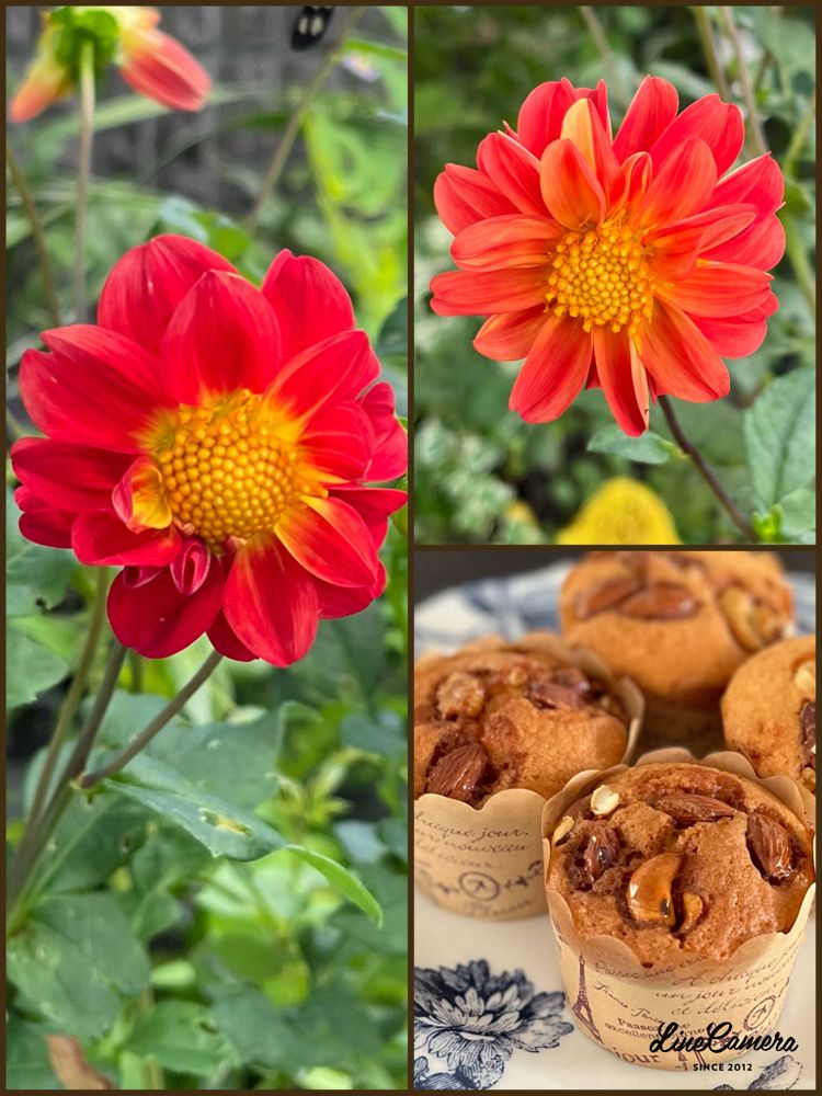 元気いっぱいな花色のダリアも、マフィンもいいね〜💕👍✨