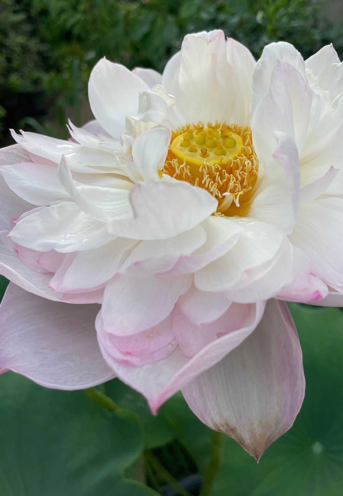 梅雨の☂️が止んで晴れ間がのぞいています。今日はハスの日という事で、☔️⚡️🌬️に耐えぬいた①今朝の蕾と②1w前の八重ハスです。