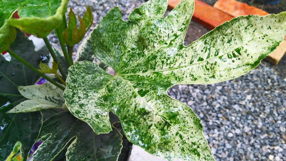 雨に濡れた斑入りの葉がとっても綺麗✨