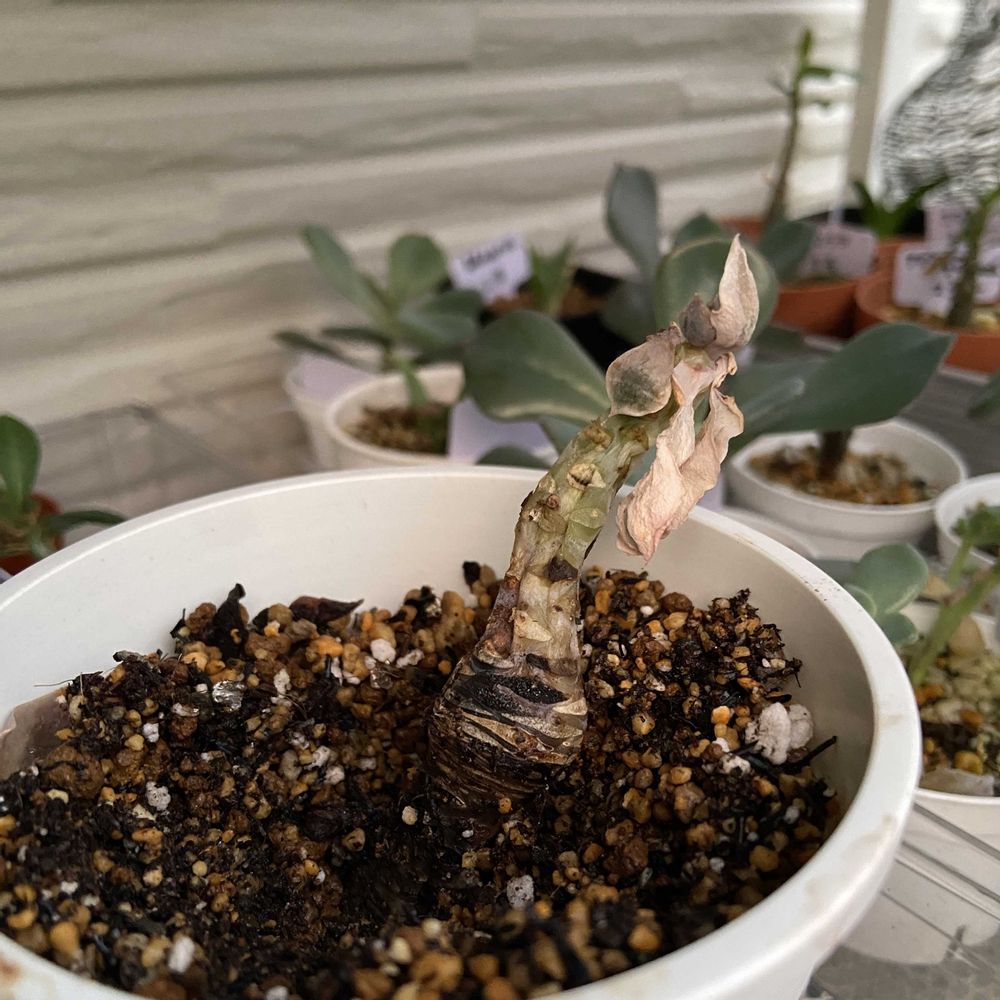 エケベリア ルノーディーン死んだ……雨が怒涛のように降った日があって、さすがにかかり過ぎだから雨の当たらないところに移動したけど、翌日も大雨で土が乾かず。