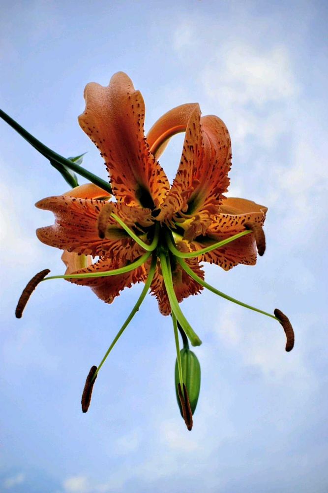 くるりと反り返ったオレンジ色の花が 日本にも自生する「鹿の子百合」を 思わせることから 付いた名前・・・なのですが、他人の空似で 鹿の子百合とは 類縁関係は 遠いようです。