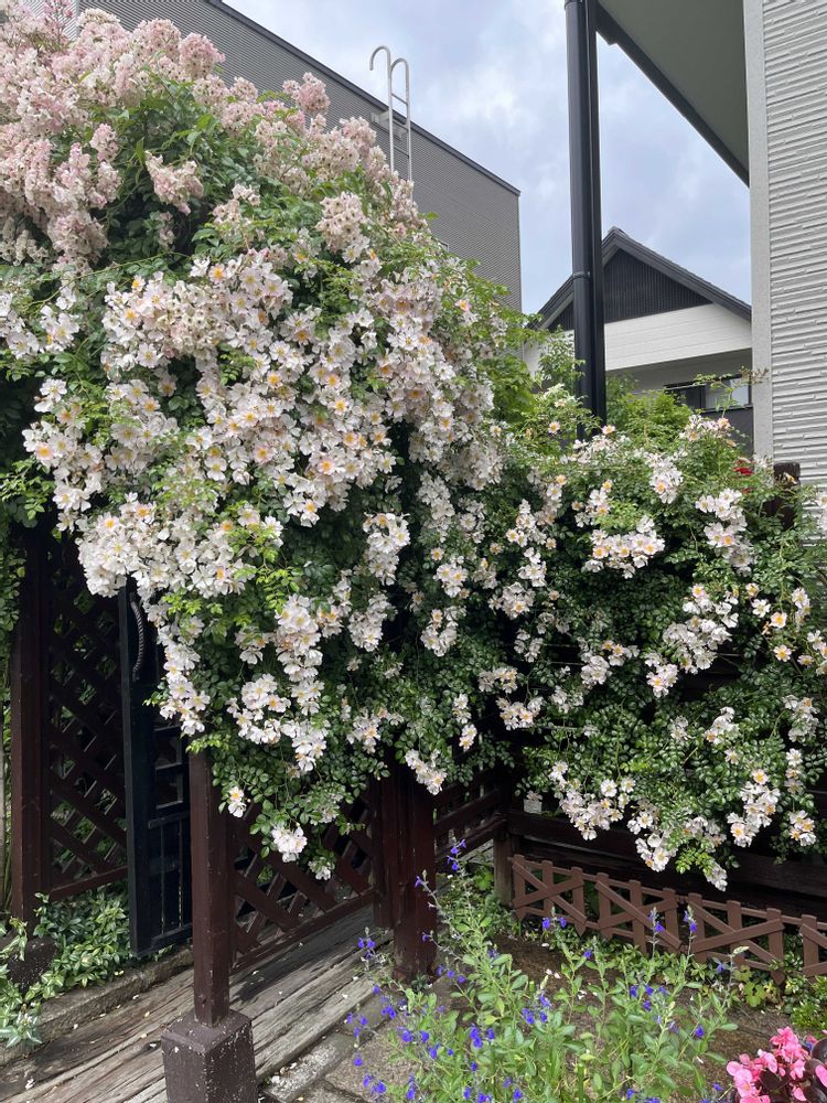 テリハノイバラが我が家に来たのは30年前 友人宅のバラを剪定したので数本いただいて挿し木をしたのがこんなになってくれたんですよう〜🥰