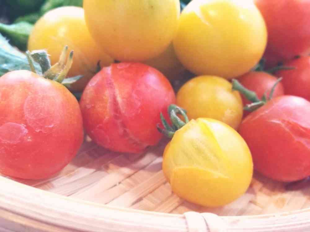 昨日の夜の雨で、トマトが湯むき状態に( ゚д゚)