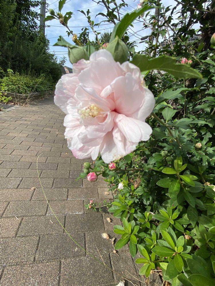 いつもの散歩道の八重の木槿が綺麗でした🌸