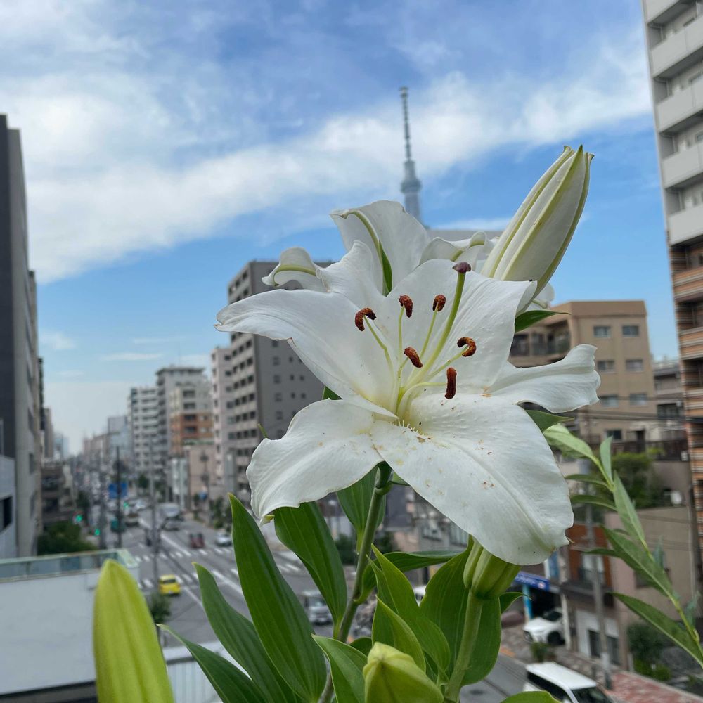街中にお住まいなんですね!街中と百合のコントラストが印象的です😊
