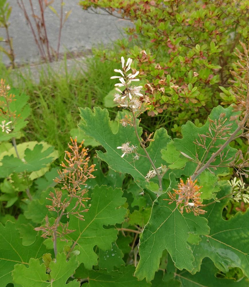 葉は互生し、キクの葉のように羽状に浅く裂け、裂片の先は丸い