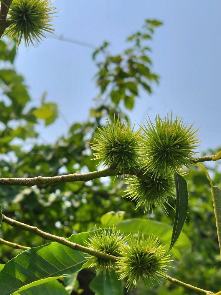 栗🌰の、赤ちゃん緑のイガイガが可愛い💓