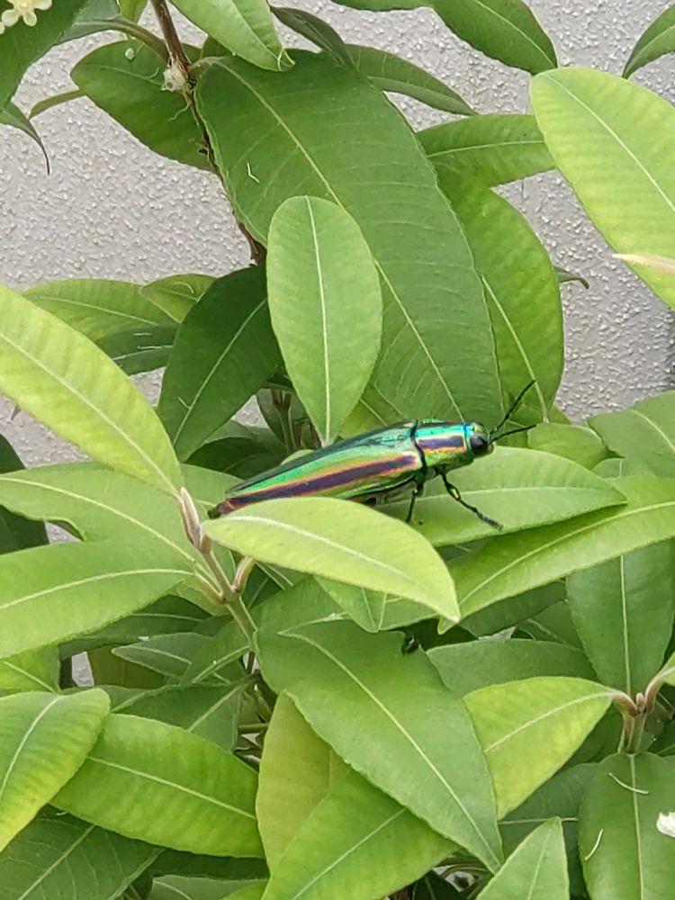 タマムシ~初めて見ましたがキレイだわ✨なんて思ってしまいました🥹 こういう色のトカゲみたいなのがウチの庭に時々出てくる🦎