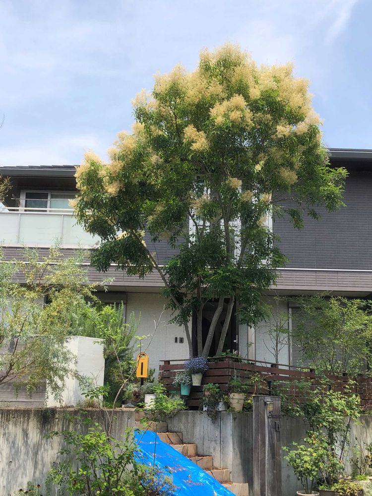 わー、シマトネリコでかくなりますね😨立派だけど普通の住宅ではちょっと収まりつかないですね😅もずくさんちは大きいけど、それでもはみ出てる💦