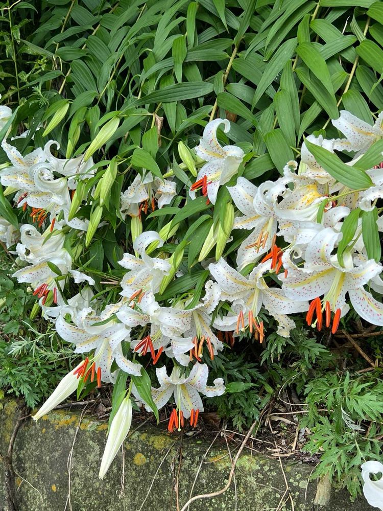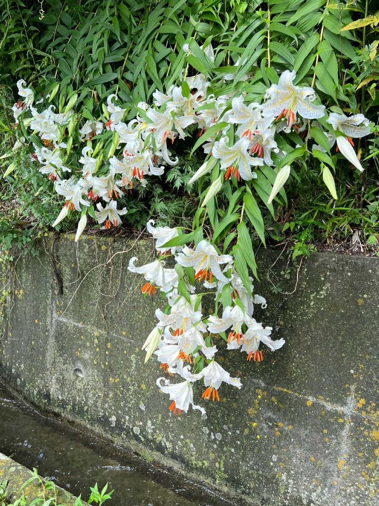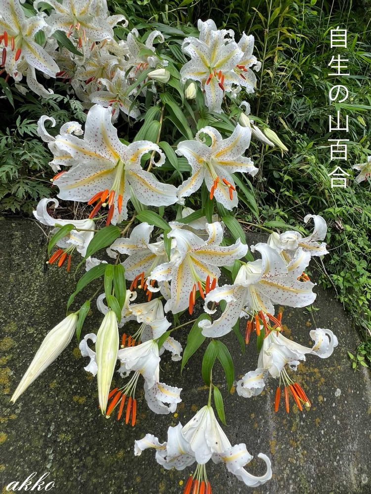 野菜畑の山側に野生の山百合が沢山咲いてます
